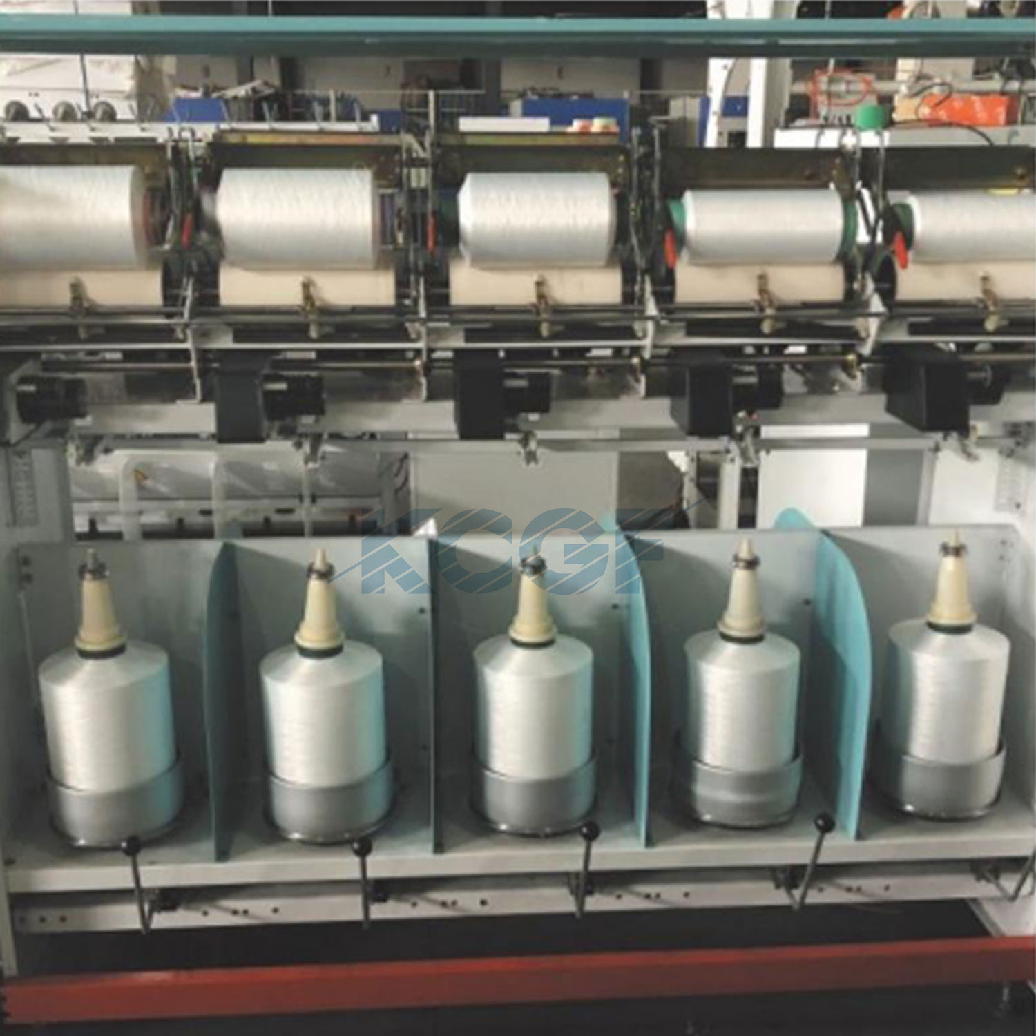 KC500A 工业丝双倍捻机,适用于丙纶、锦纶等纤维长丝及短纤的 2 股或 3 股初捻、复捻,可一次加捻完成,支持无人智能操作;另有填补国内空白的大卷装倍捻机等机型。